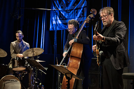 Axel Fischbacher (Gitarre), Nico Brandenburg (Kontrabass) und Tim Dudek (Drums) sind jeder für sich feste Größen der deutschen Jazzszene und seit Jahren ein eingespieltes Team das wunderbar frei und sehr musikalisch mit den Stücken umgeht. „Brüder im Geiste“ sagt Fischbacher gerne über sein Trio – und das hört man. Drei virtuose Solisten, die ihr Spiel ganz dem gemeinsamen Sound widmen und intuitiv als Team mit den Elementen der Kompositionen spielen.